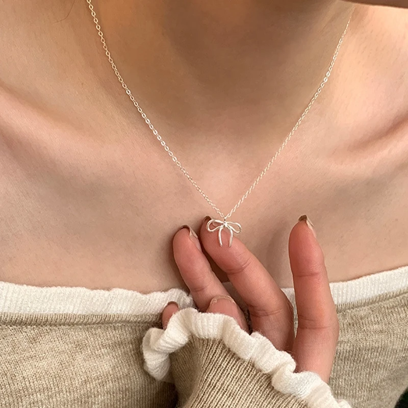925 Sterling Silver Cute Bowknot Pendant Necklace For Women Girl Charm Chain Fashion Jewelry Accessories