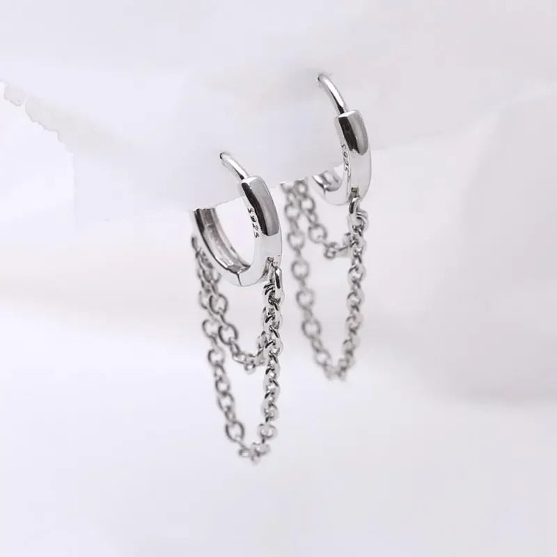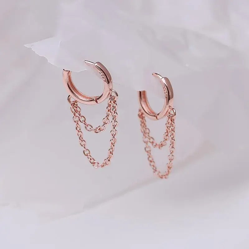 925 Sterling Silver Double Layer Tassel Hoop Earrings For Women INS Popular Cold Style Women Fashion Jewelry