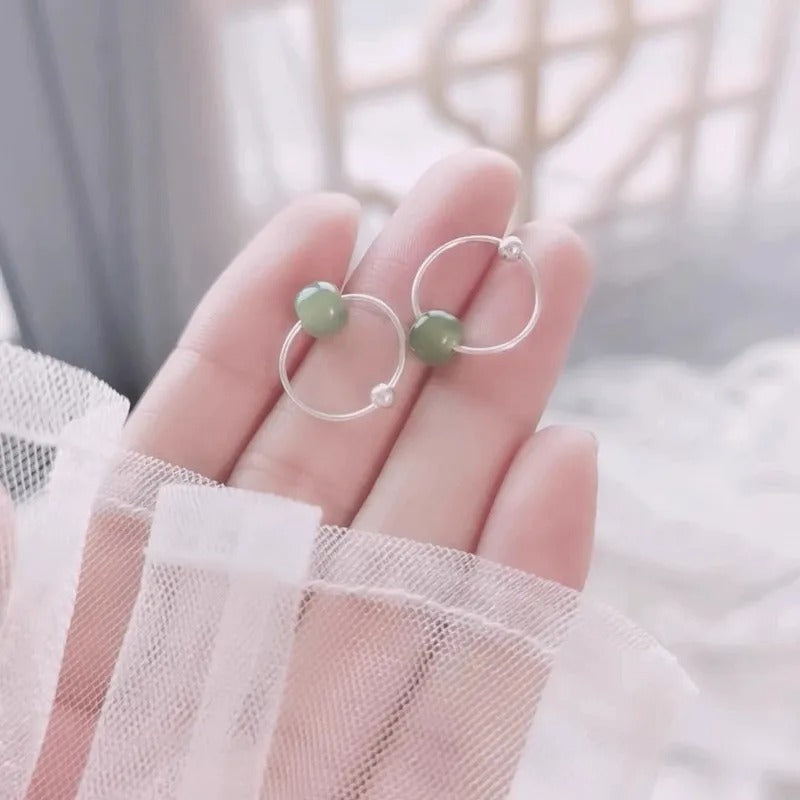925 Silver Hotan Jade Hoop Earrings for Women Minimalist Jewelry