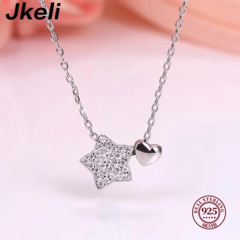 925 Sterling Silver Necklace Sweet Star Heart Pendant 18k Necklace For Women Wedding Statement Fine Jewelry