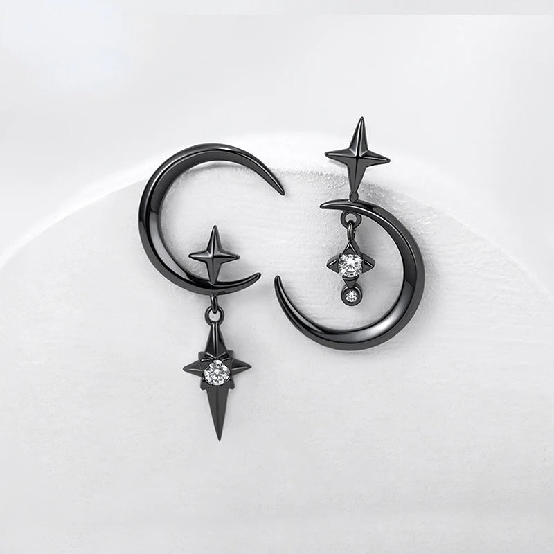 925 Sterling Silver Moon Crystal Earrings Trendy Dangle Studs for Women