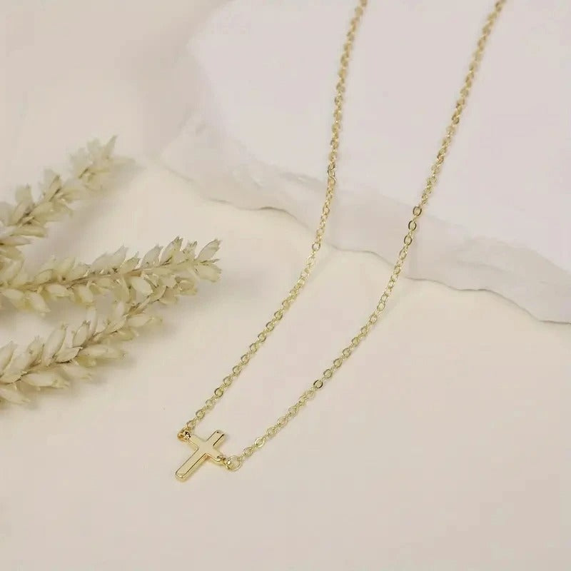 A Cross Pendant necklace 14K gold plated stylish simple cross pendant necklace Faith suitable for everyday gift women necklace