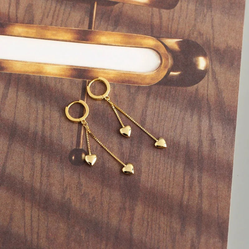 ANENJERY Silver Heart Chain Threader Earrings Simple Classic Jewelry for Women
