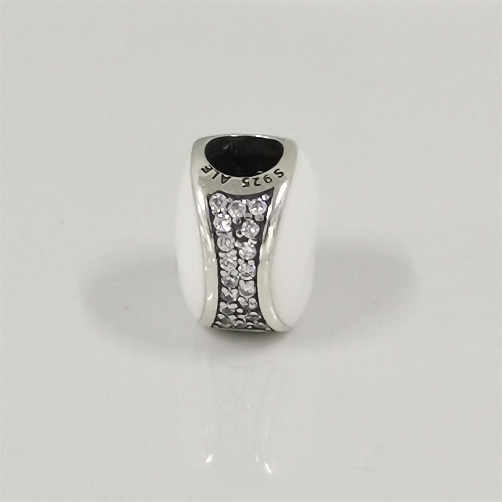 This Authentic Pandora Double-Sided White Enamel Charm features a sleek and modern design crafted in 925 sterling silver with smooth white enamel detailing on both sides. Whether worn solo or layered with other charms, it brings sophistication and versatility to any bracelet or necklace.