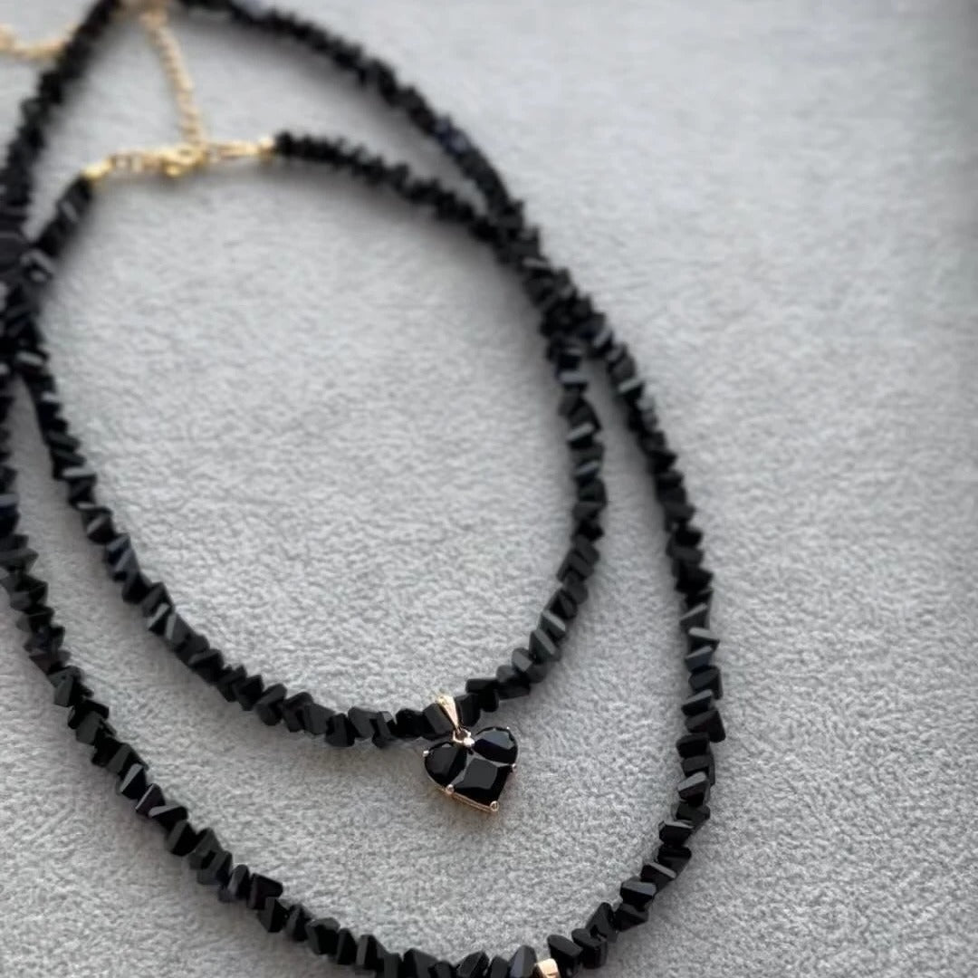 Black Beads Necklace With Heart Pendant Female Jewelry Luxury Rhinestone Choker Necklaces Women Ladies Party Necklace