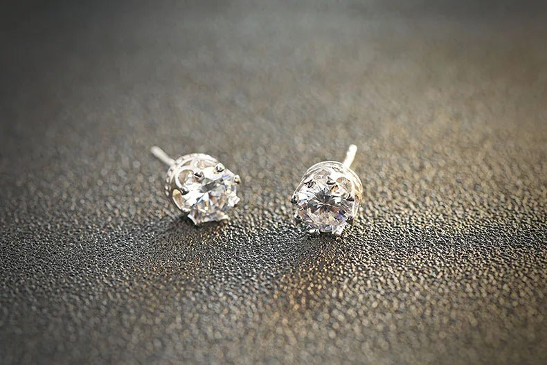 Classic 925 Sterling Silver CZ Crystal Stud Earrings For Women Men Top Quality Cubic Zircon Ear Accessories Jewelry