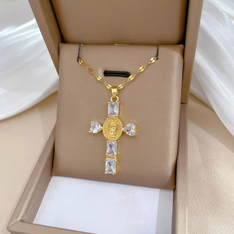 Classic Personalized Love Virgin Mary Micro-paved White Jewelry Necklace Gorgeous Stainless Steel
