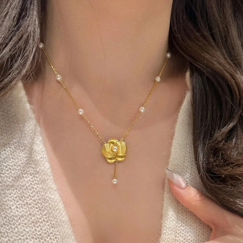 Classic Retro Fashion Brushed Butterfly Orchid Pearl Necklace Tassel Luxury Exquisite Clavicle Chain Wedding Jewelry Gifts