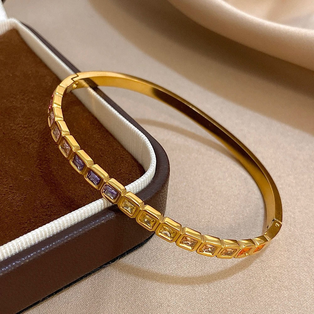 Stylish stacked cuff bracelet featuring colorful zircon square beads