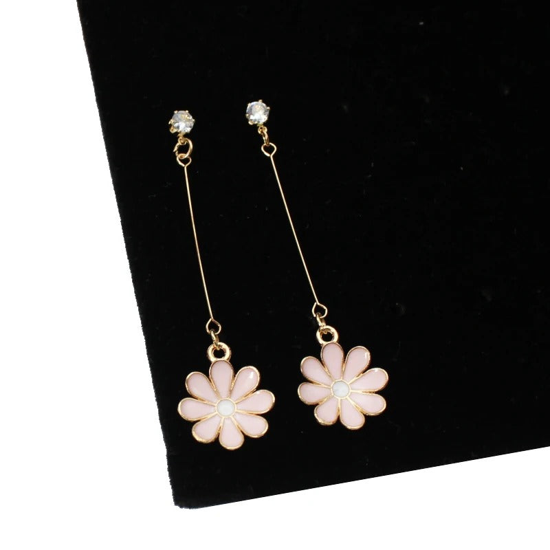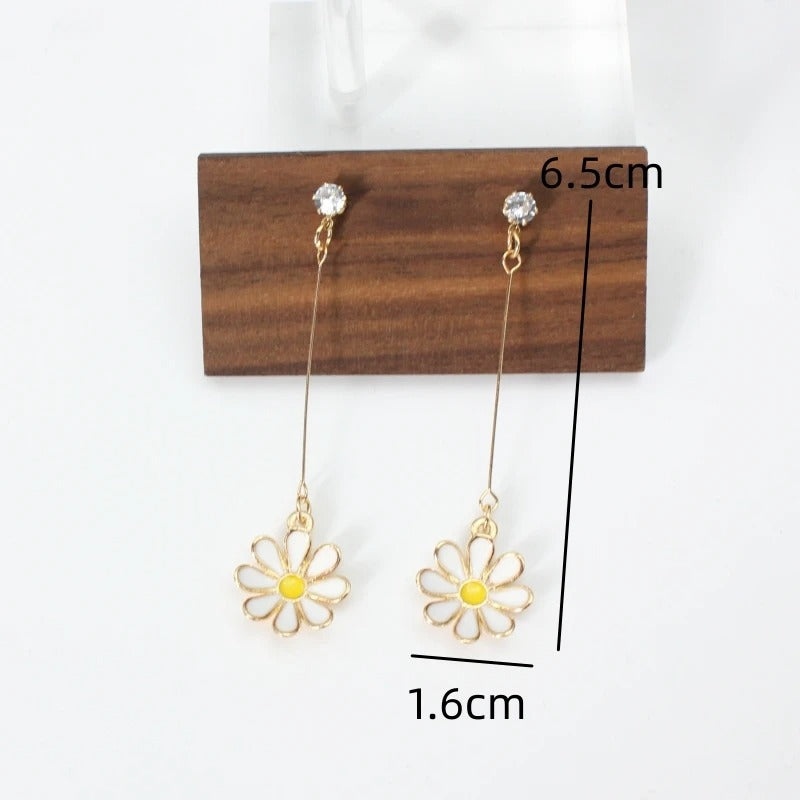 Gold Daisy Sunflower Drop Earrings Long Dangle Jewelry for Women