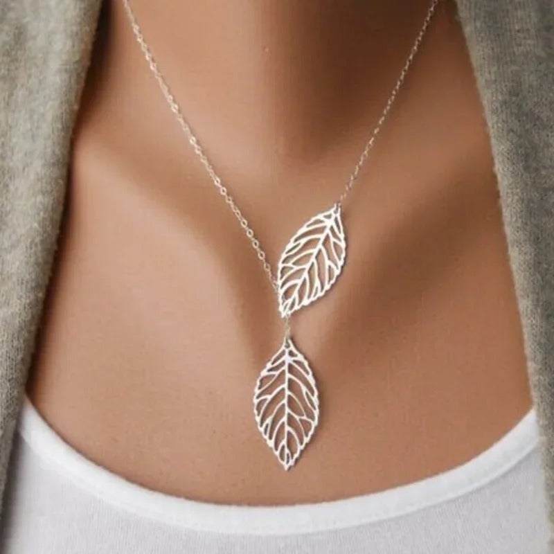 Delysia King Leaf Necklace /double leaf clavicle chain