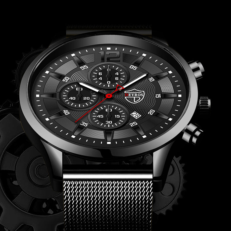 DEYROS Mens Fashion Minimalist Watches Men Business Casual Quartz Watch Simple Male Stainless Steel Mesh Band Clock Reloj Hombre