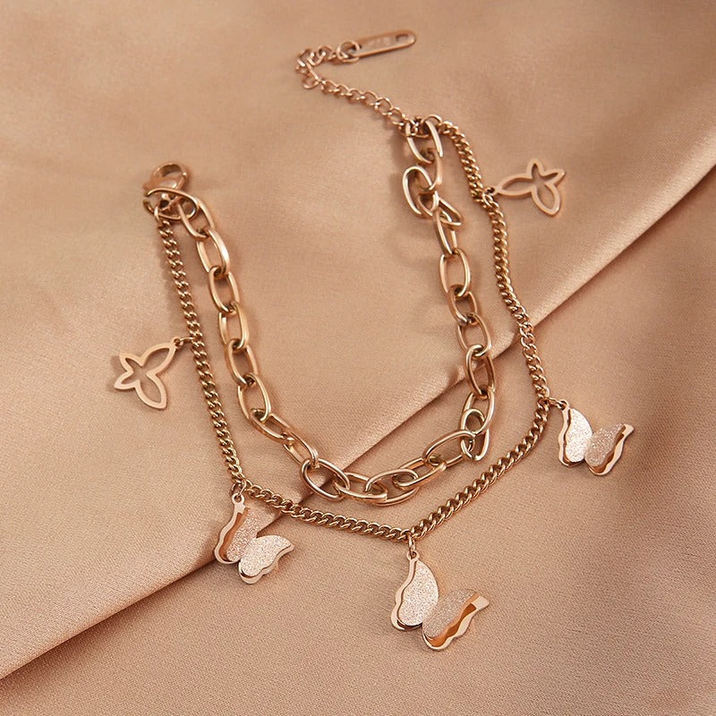 DIEYURO 2-Layer Butterfly Bracelet – Women’s 316L Stainless Stee Jewelry