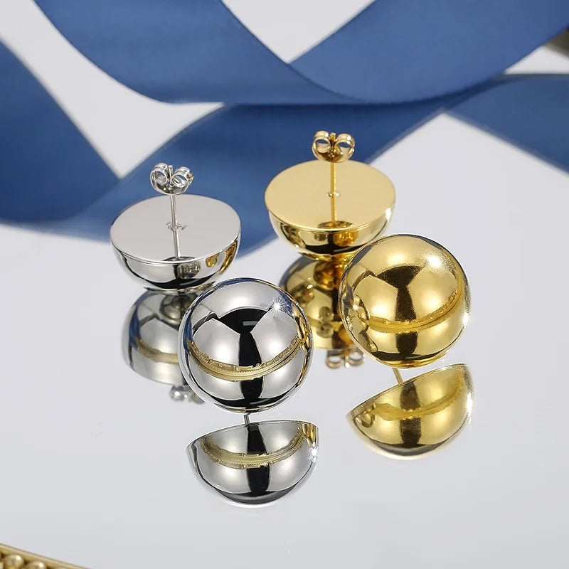Elegant Stainless Steel Earrings for Women Round Hollow Polished Women's Ear Stud Simple French Party Wedding Jewelry