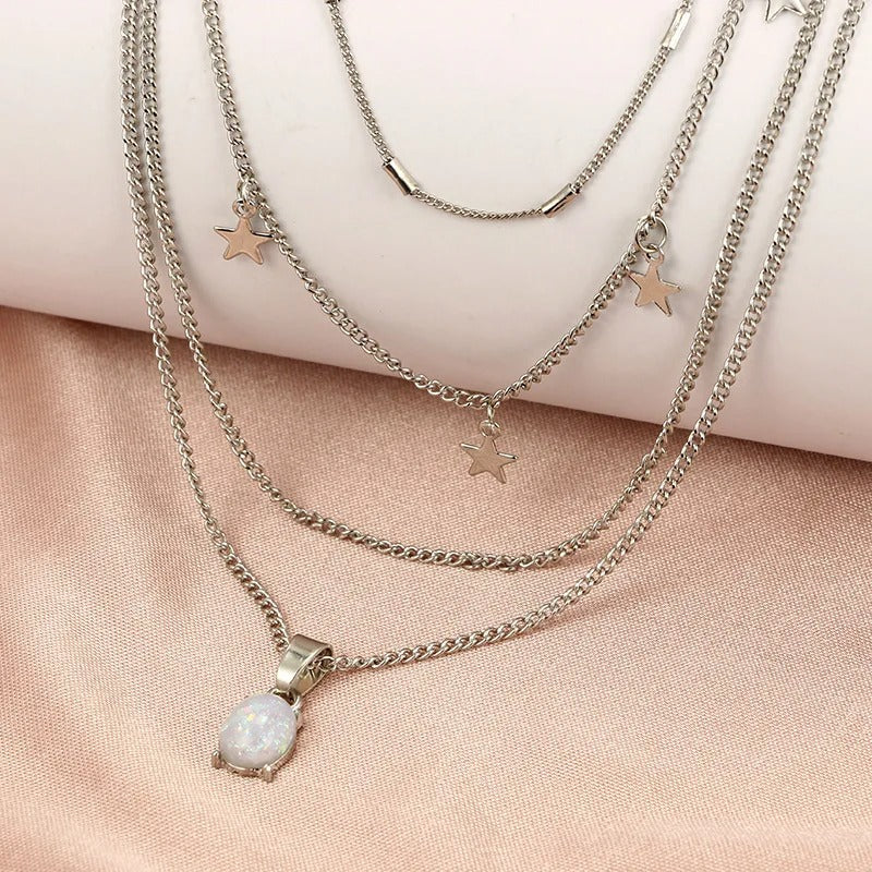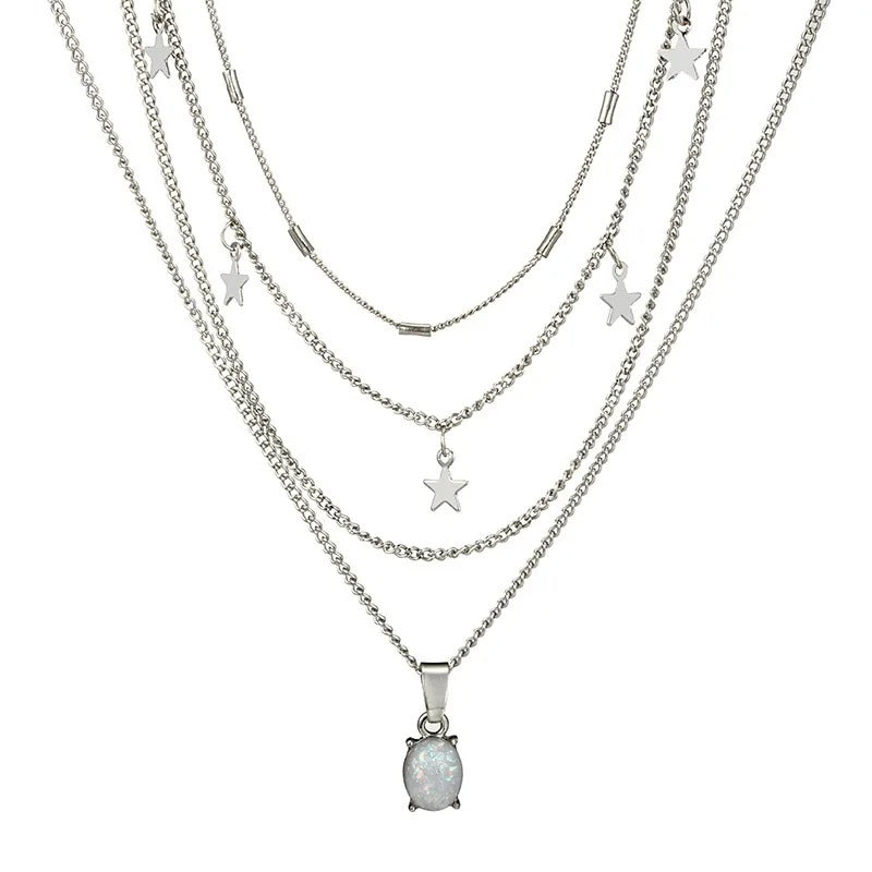 Bohemian Crystal Pentagram Multilayer Necklace Geometric Oval