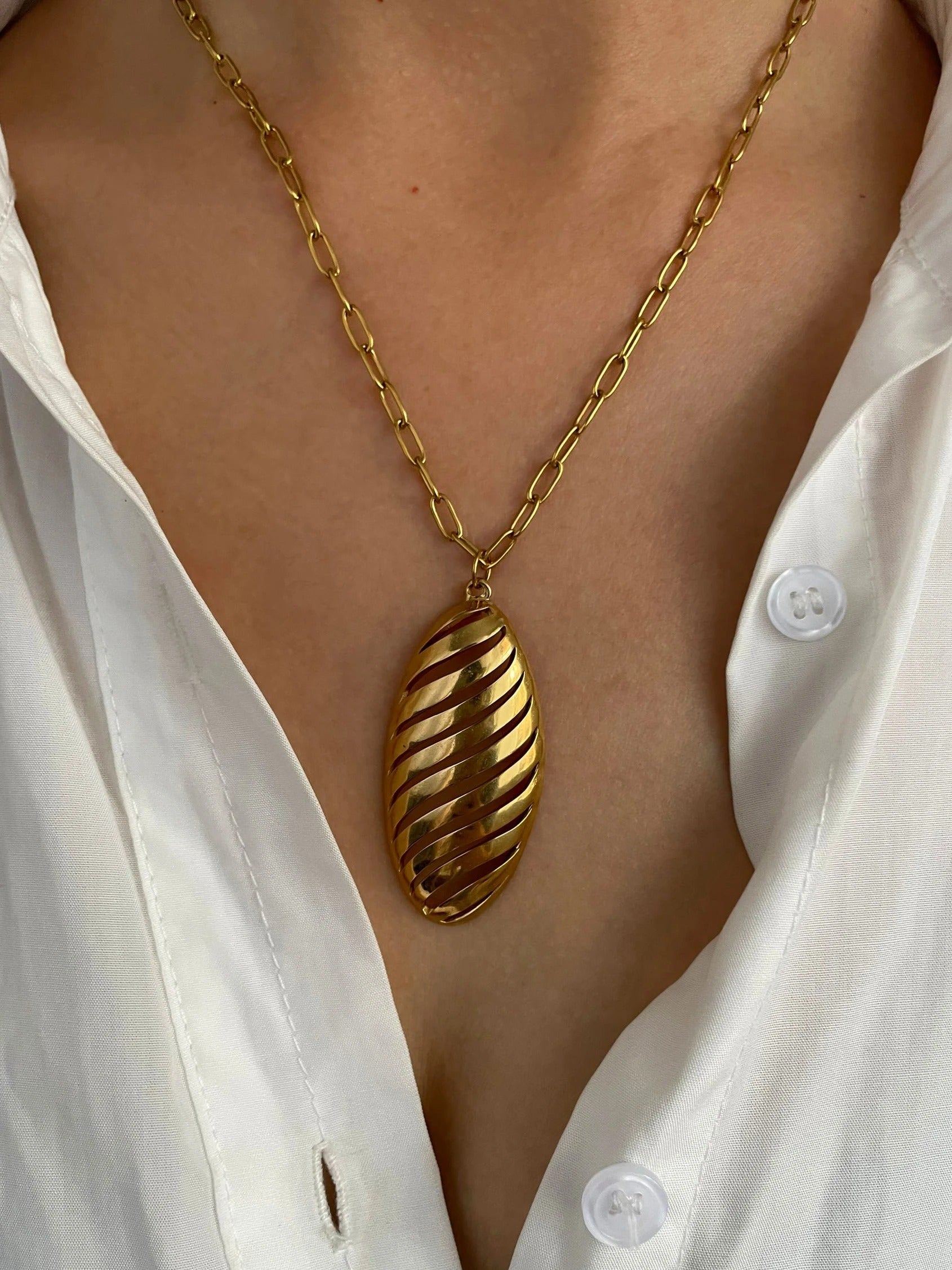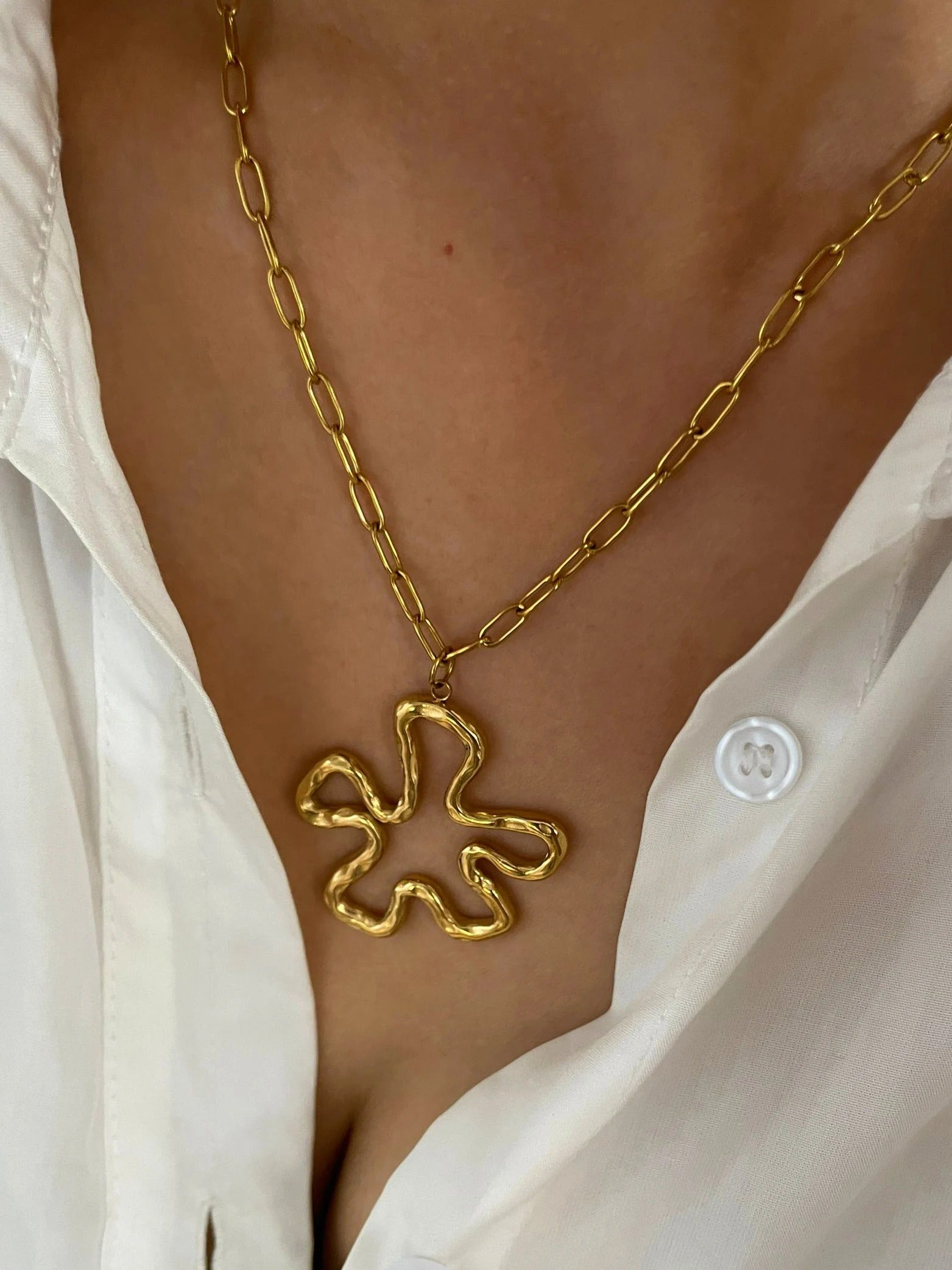 Exaggerated Punk Big Butterfly Hollow Oval Flower Pendant Necklace for Women Stainless Steel Waterproof Fashion Gifts