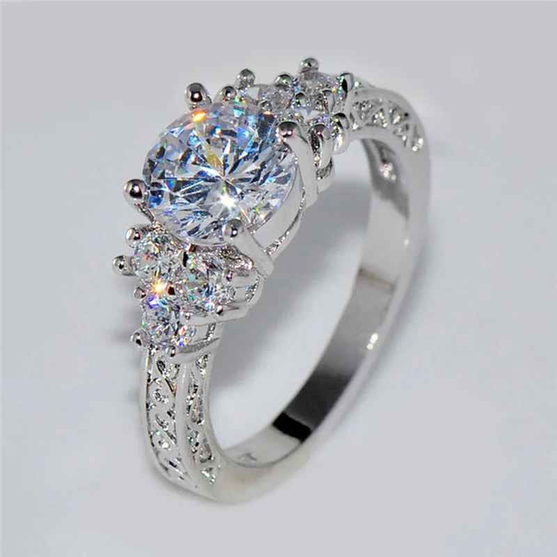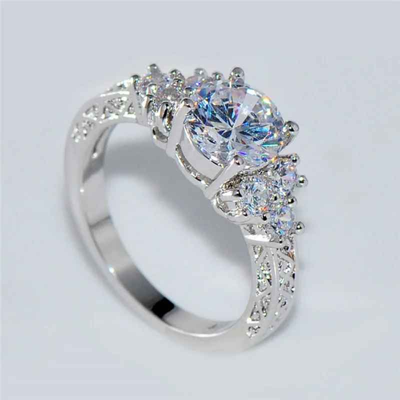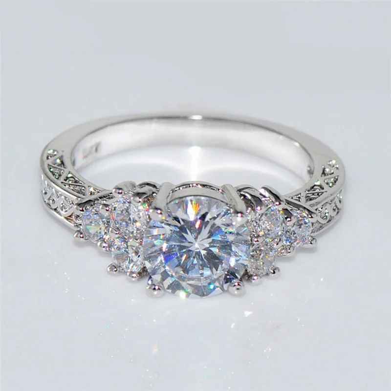Exquisite Fashion Silver Color Engagement Rings for Women Fashion White Zircon Stones Ring Anniversary Bridal Wedding Jewelry