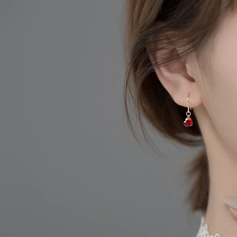 Exquisite Pomegranate Wine Red Zircon Love Heart Dangle Earrings For Women Simple Desin Gold Color Ear Hook Party Jewelry N717