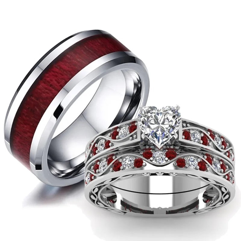 Women’s Heart Crystal Ring & Men’s Stainless Steel Wedding Band