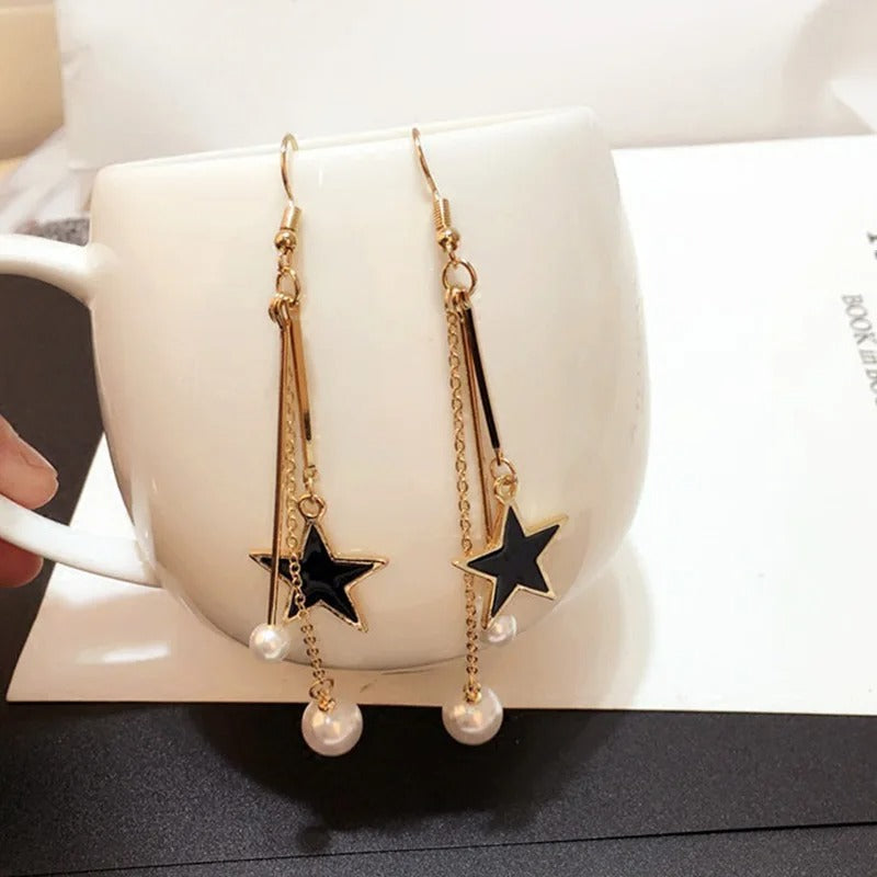 Long Tassel Pearl Star Earrings for Women Wedding Party Dangle Jewelry Gift