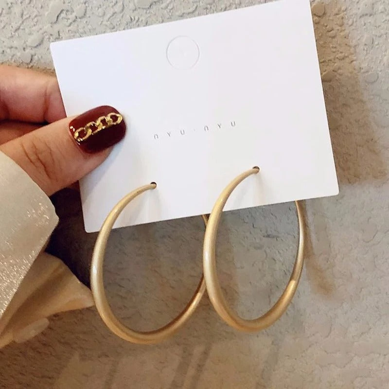 Matte Gold Big Hoop Earrings Round Circle Women Retro Jewelry