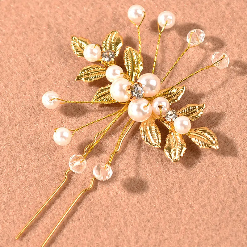 Fashion U-shaped Hairpin Hair Clips Leaf Pearl Hair Bridal Headwear Wedding Jewelry Hair Accessories