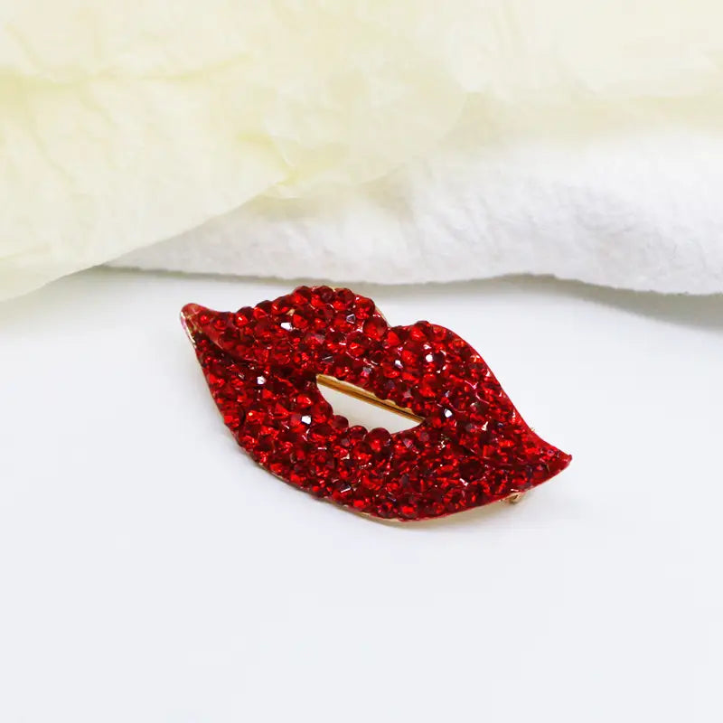 Red Lips Rhinestone Brooch Luxury Crystal Jewelry for Women
