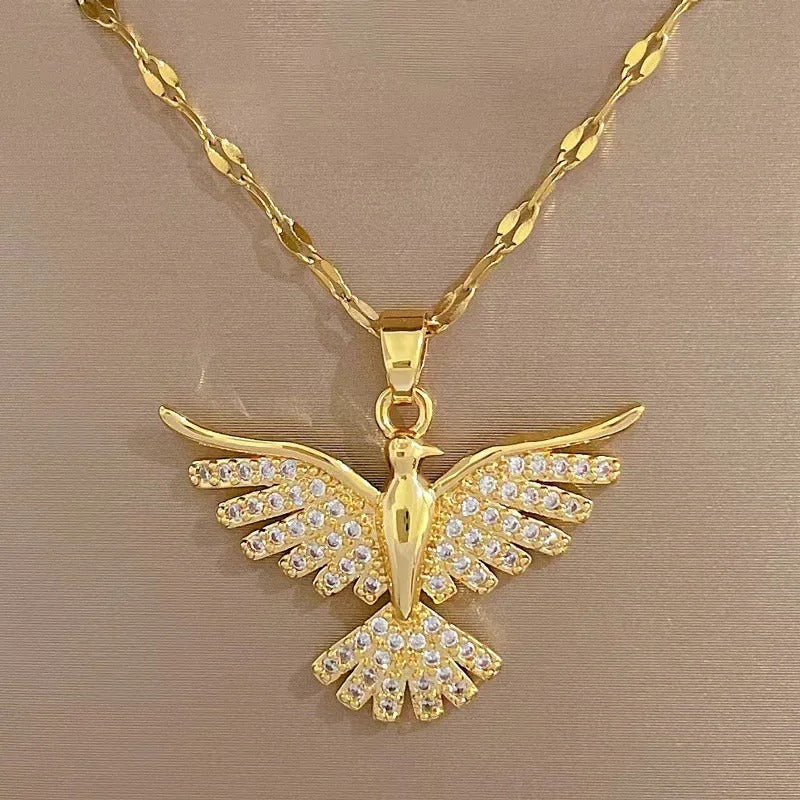 Fashionable Phoenix Necklace with Zircon Copper Inlaid Personality Pendant Necklace for Women Versatile Gold-Plated Jewelry
