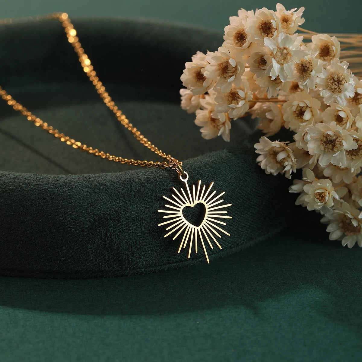 Geometric Heart Sun Pendant Necklace Stainless Steel Choker Neck Chain Women Fashion Jewelry Gift For Mother Lover