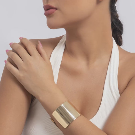 Gold Color Wide Cuff Bracelet for Women Simple Open Bangle