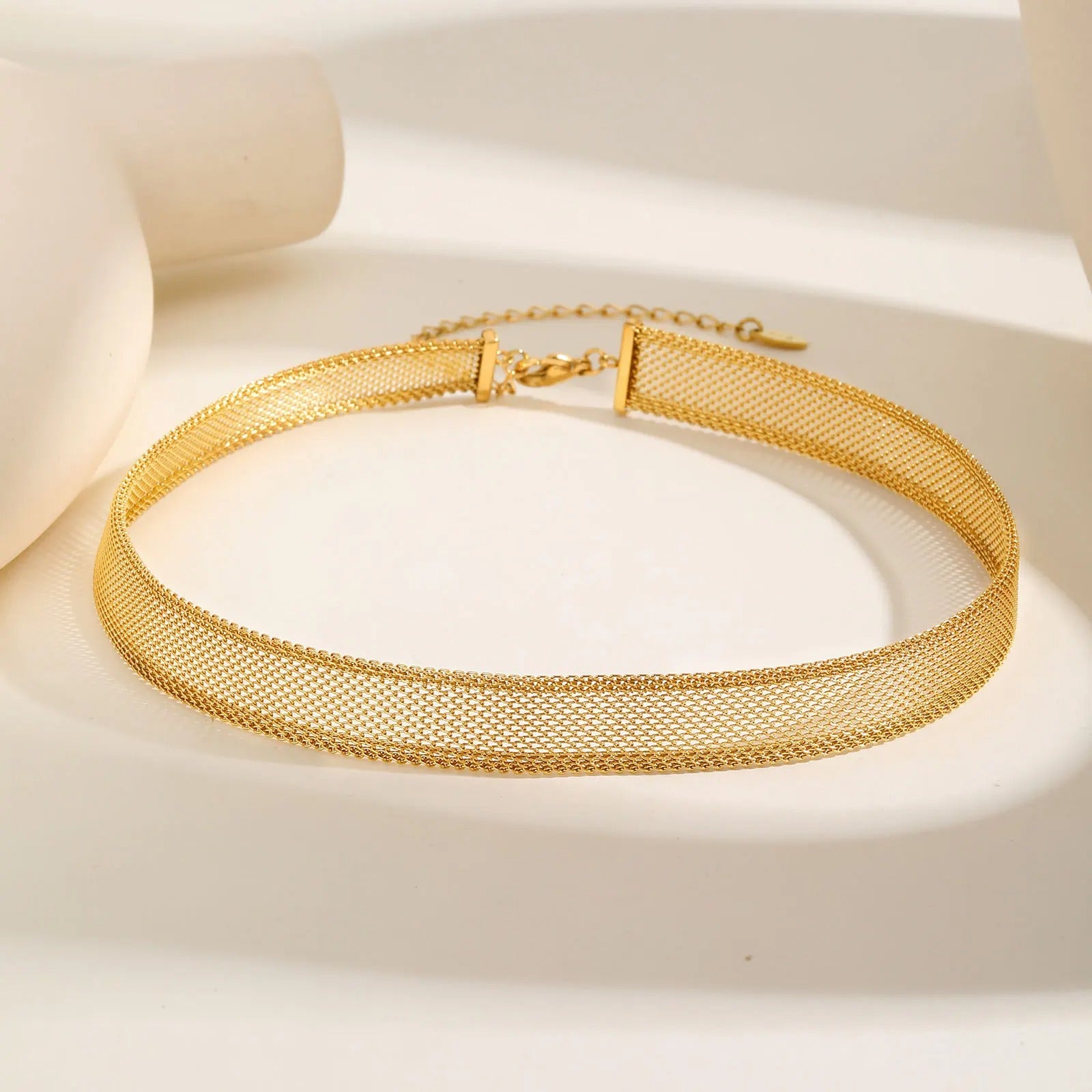 Gold Plated Hollow Mesh Choker Necklace for Women,Stainless Steel Waterproof Necklaces,Fashion Jewelry Gift