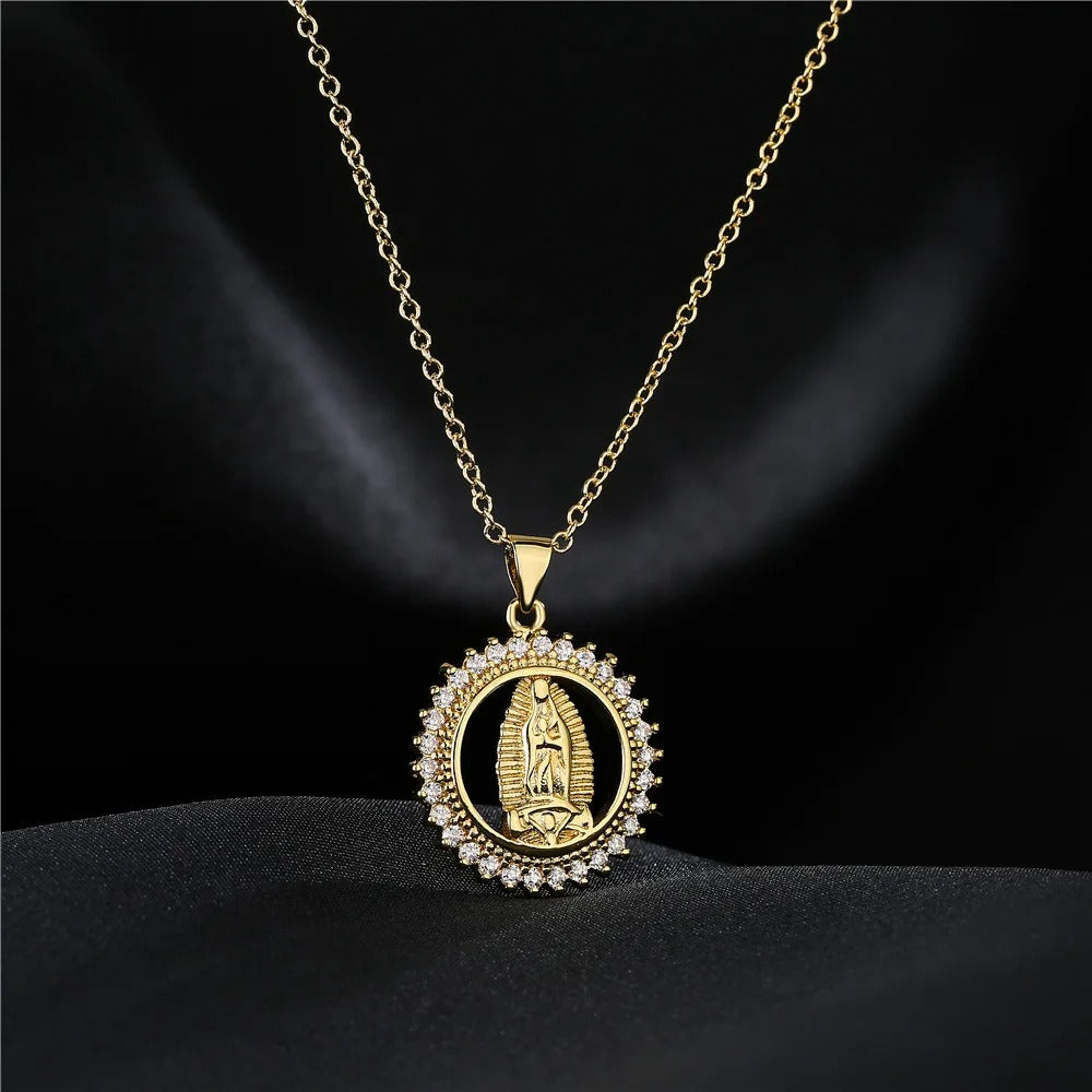 Good Quality Mary Women Necklaces, Gold Color Stainless Steel Mary Pendant With CZ Stone, Elegant Jewelry Gift