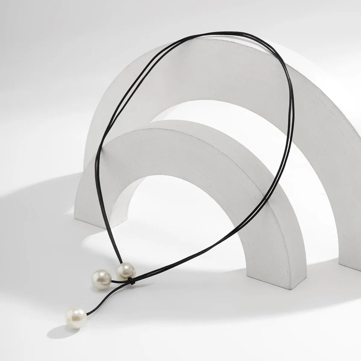 Goth Simple Black Color Adjustable Rope Chest Chain Necklace for Women Sexy Handmade Imitation-Pearl Pendant Choker Jewelry Gift
