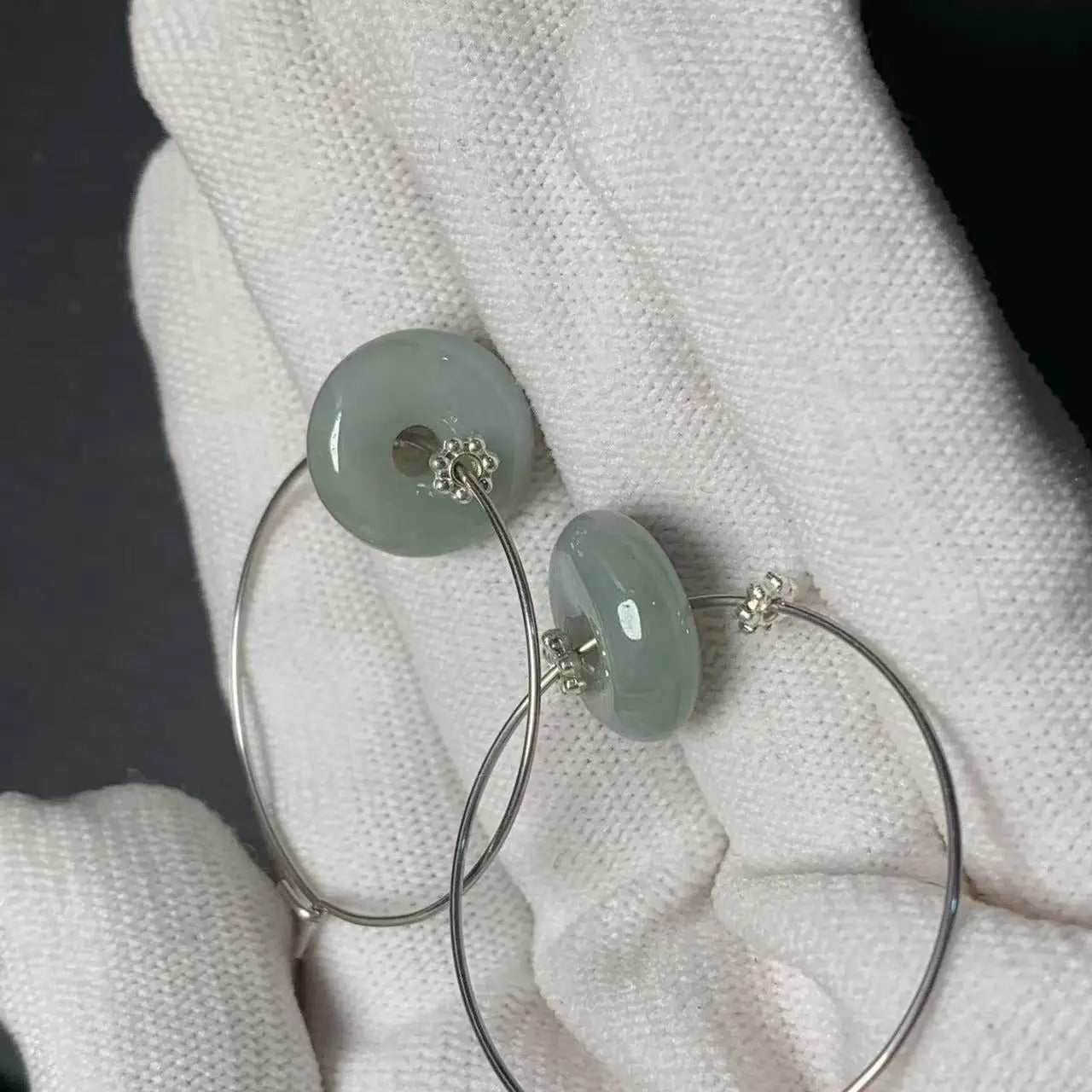 Grade A Natural Burma Blue Jade Hoop Earrings Stainless Steel Jewelry