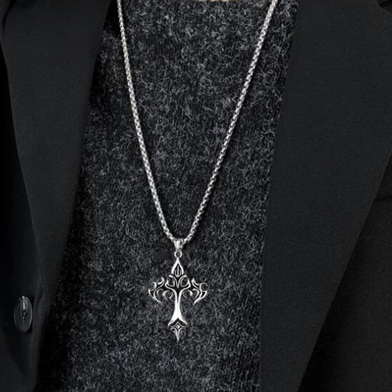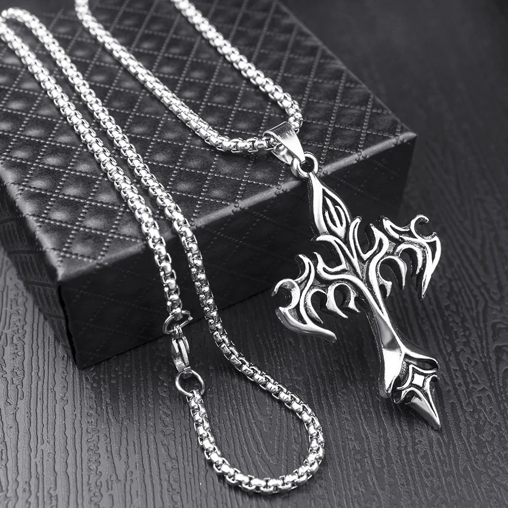 Bold Flame Cross Design: Unique flame-wrapped cross pendant, blending streetwear edge with spiritual symbolism.