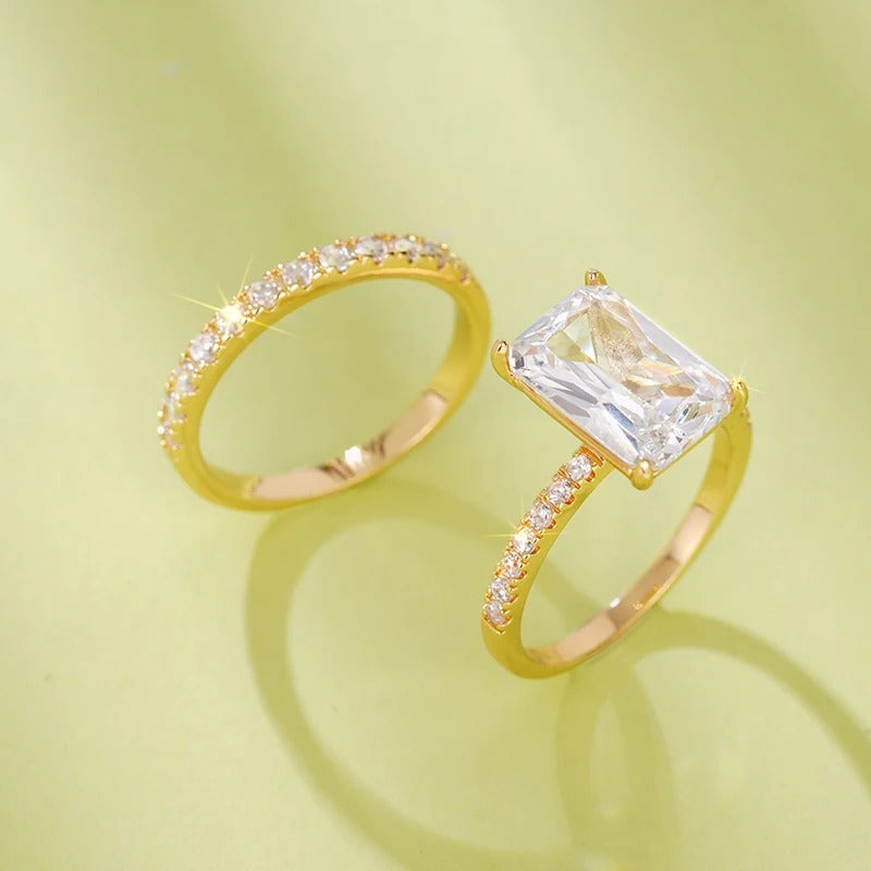 Huitan Rectangular Cubic Zirconia Set Rings for Women Bridal Wedding Accessories Luxury Trendy Engagement Band Jewelry Wholesale