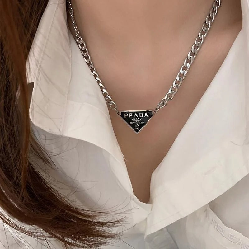 Inverted triangle titanium steel necklace women's punk style pendant, hip-hop niche design, simple and versatile accessory