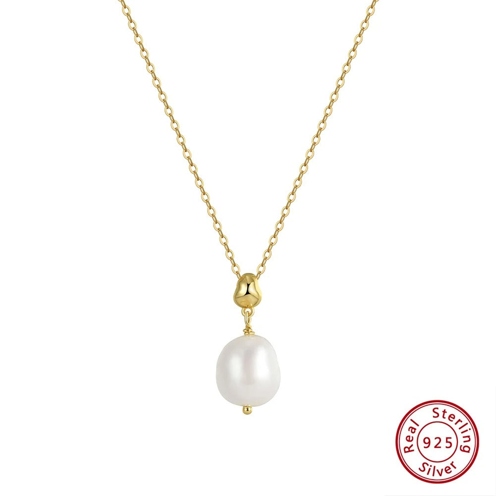 Kiss Mandy Baroque Pearl Pendant Necklace Minimalism 14K Gold Plated Sweater Chain Pearl Charm Thin Chain Necklace Gift GPN48