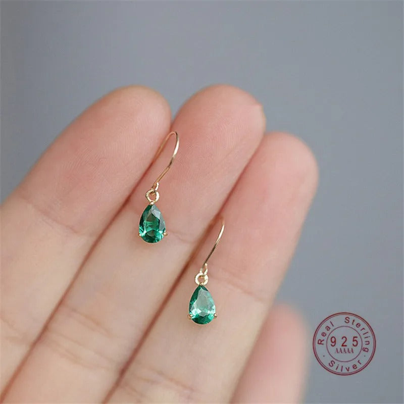 Women’s S925 Silver Green Zircon Water Drop Stud Earrings Jewelry
