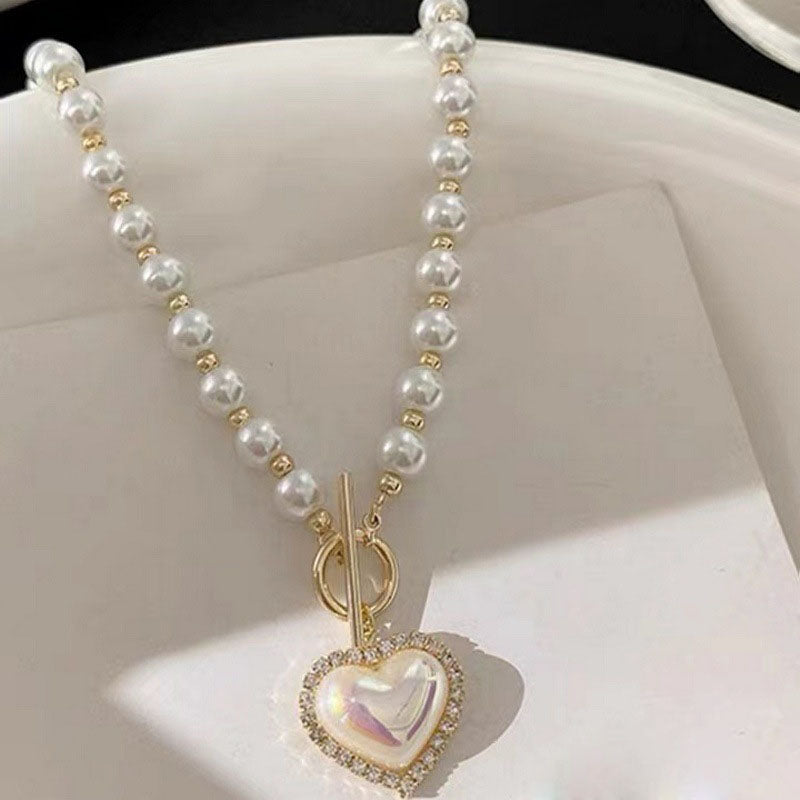Korean Elegant Big White Imitation Pearl Bead Necklace for Women Heart Shaped Necklace Sweet Wedding Party Jewelry Girls Gifts
