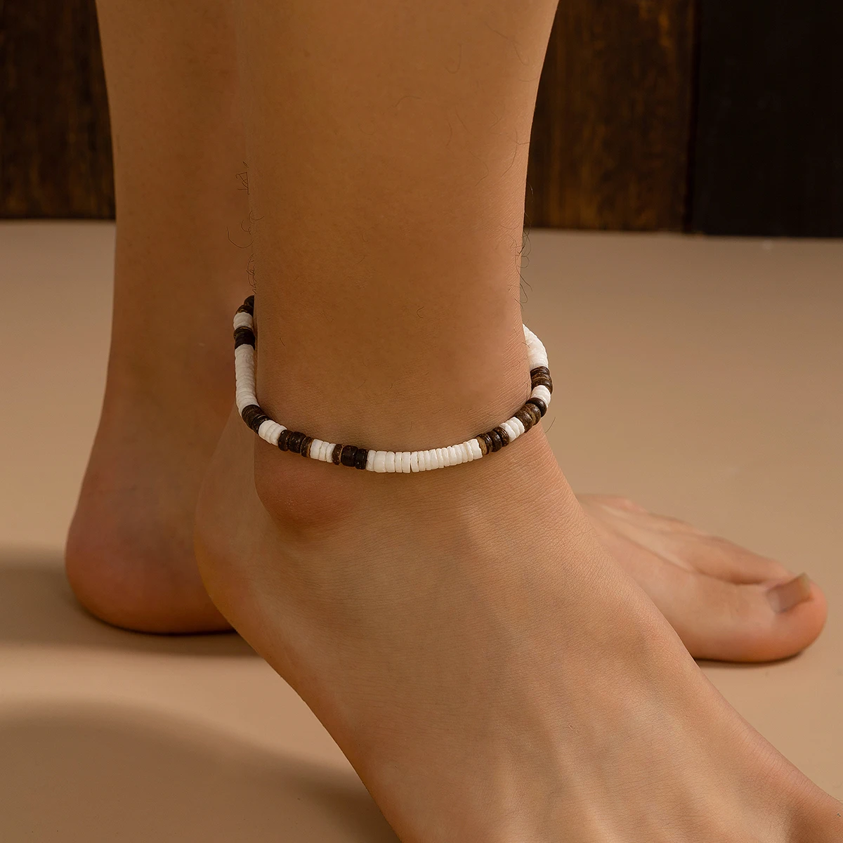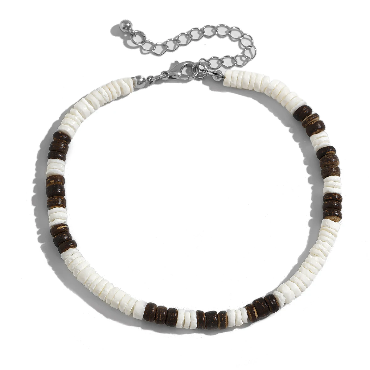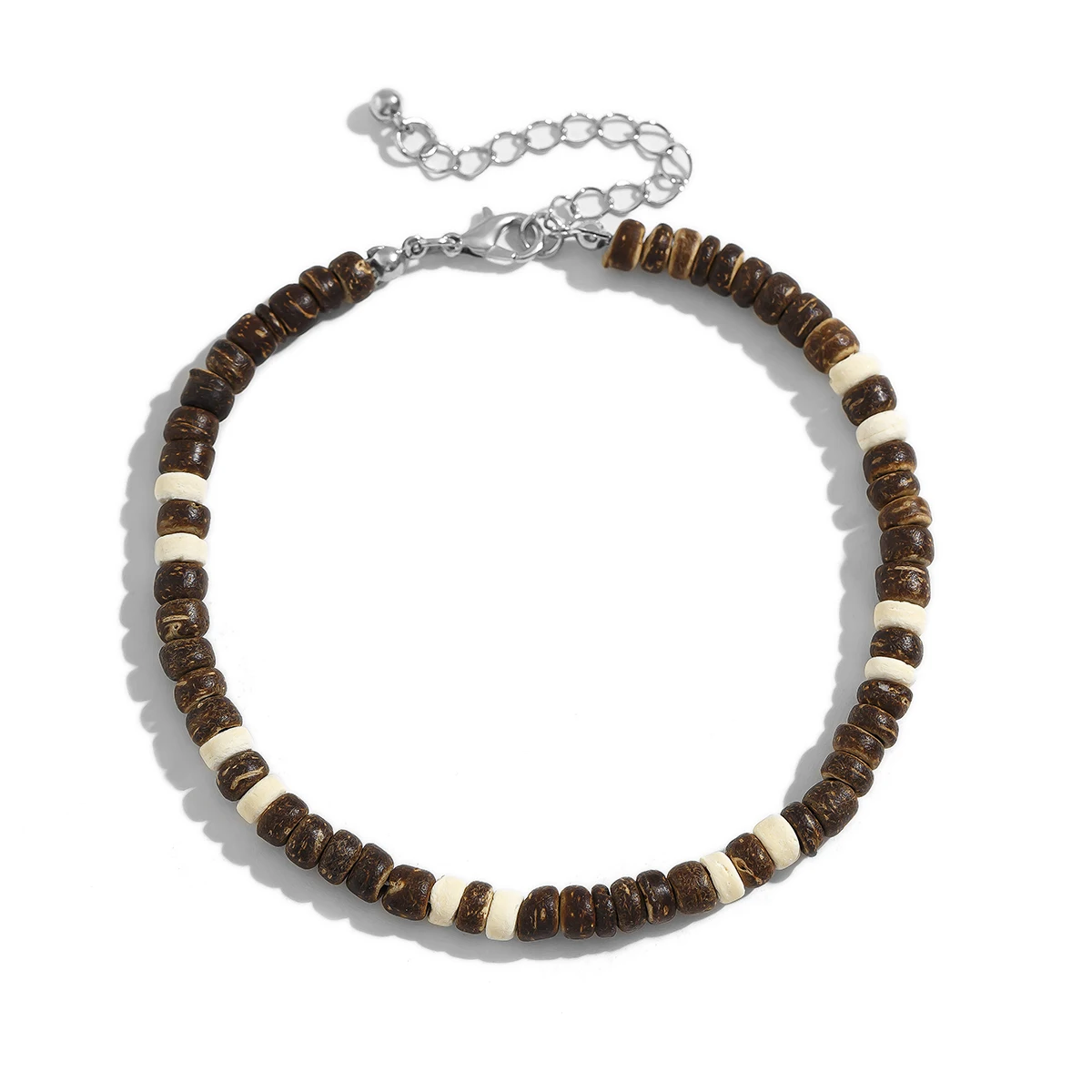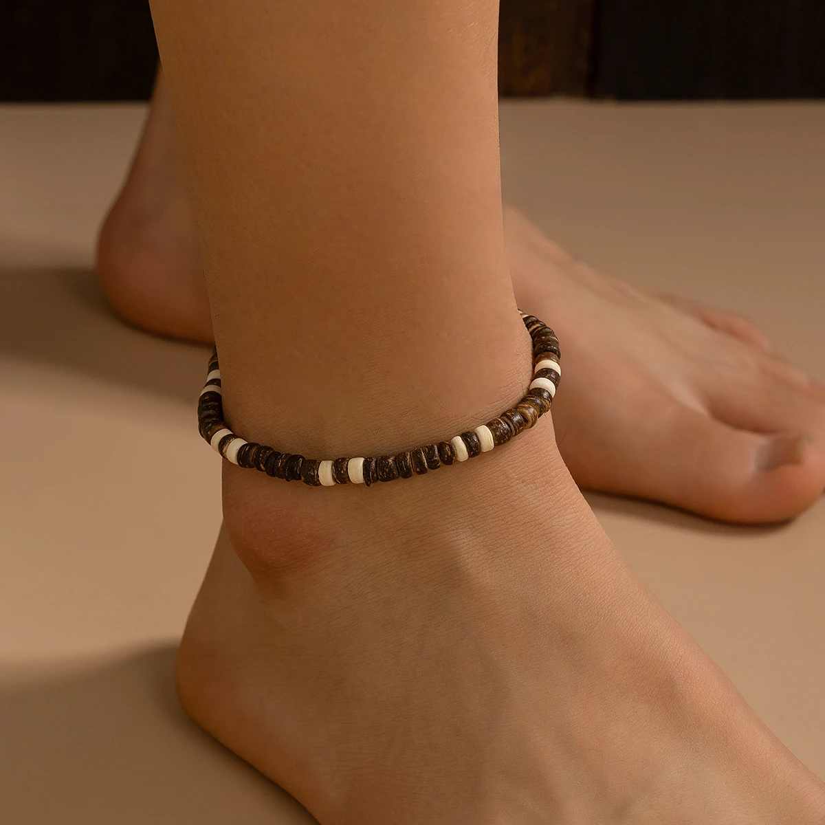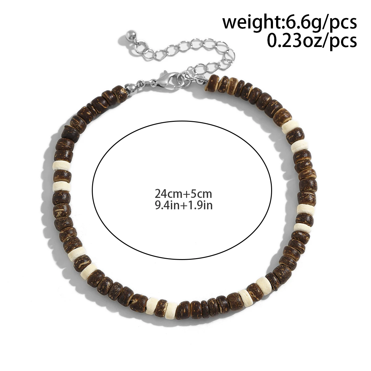 KunJoe Vintage Brown Wood Beads Anklets Chain for Men Ethnic Coconut Husk Foot Chain Summer Ankle Accessories Male Trend Jewelry