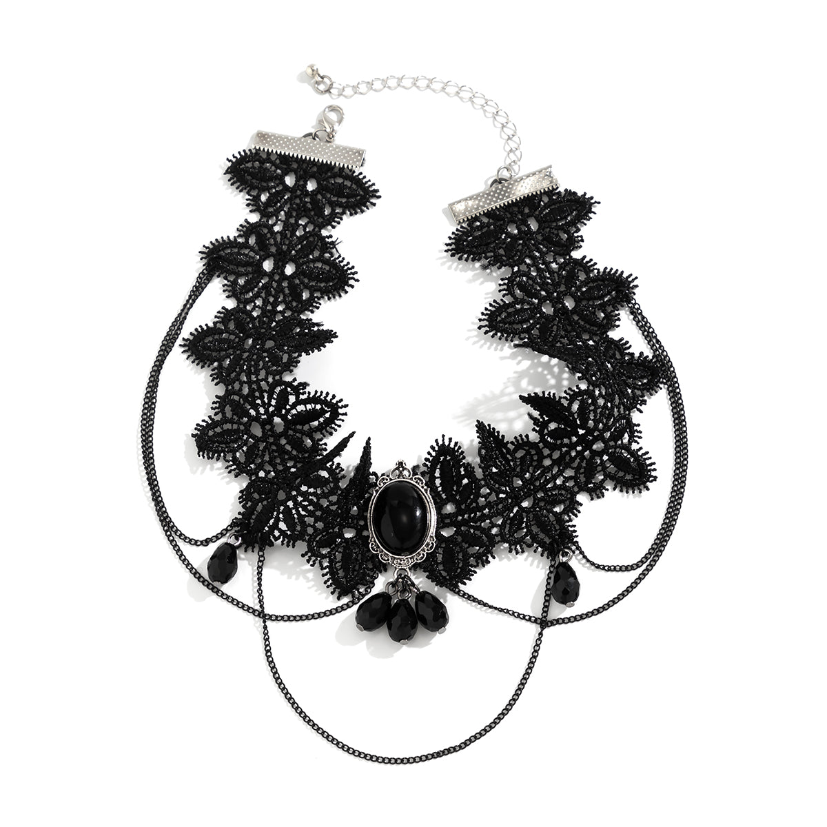 Lacteo Gothic Black Lace Choker with Crystal Beads Y2K Necklace