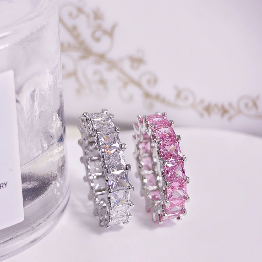 Luxury Pink Silver Color Aesthetic Wedding Band Eternity Ring for Women Gift Finger Lots Jewelry R4816