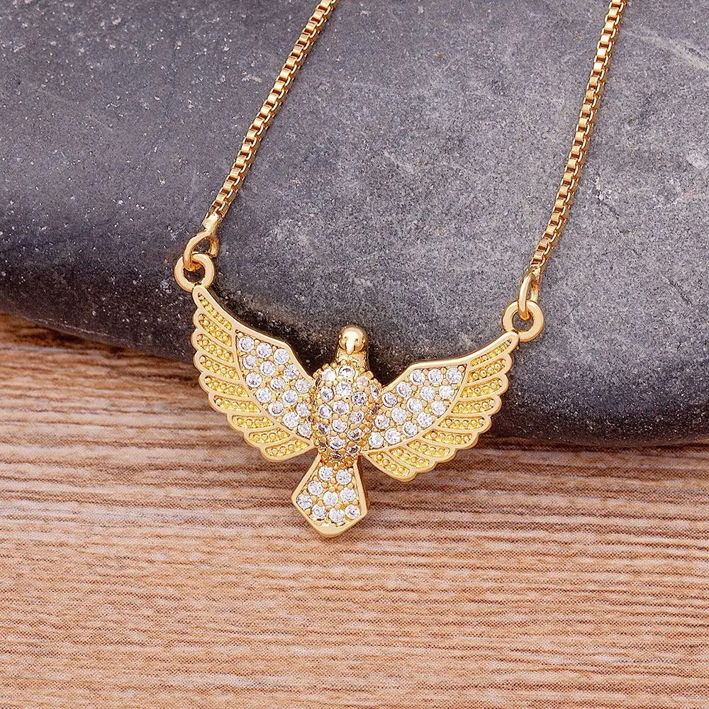 Luxury Zircon Eagle Pendant Necklace Gold Plated Animals Cool Fashion Chain Choker Party Birthday Gift Jewelry