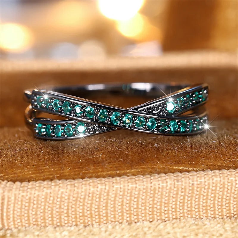 Minimalist Stacking Crossed Wedding Bands Black Gold Silver Color Blue Red Green Stone White Zircon Thin Rings For Women Jewelry