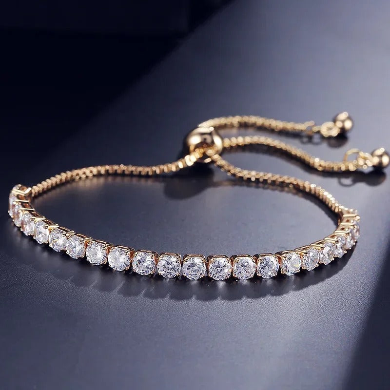 Moonso CZ Tennis Bracelet White Crystal Adjustable Bangle