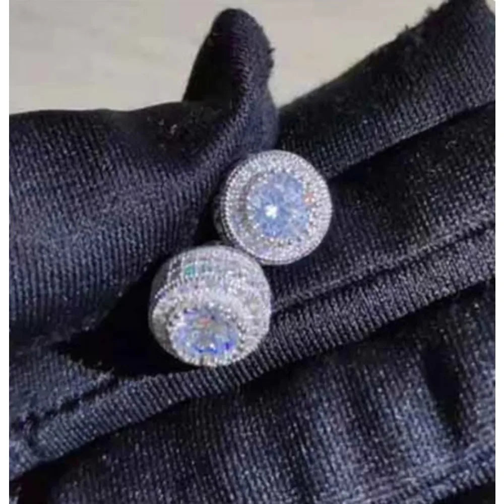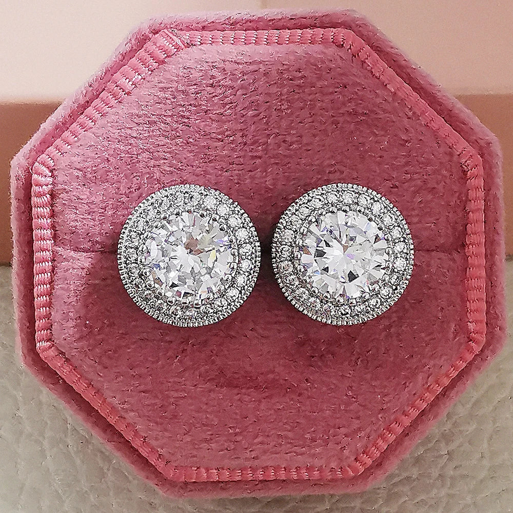 Moonso Female Austrian Round Earring Gold Color White Zirconia Hip Hop Wedding Stud Earrings For Women Jewelry E7565