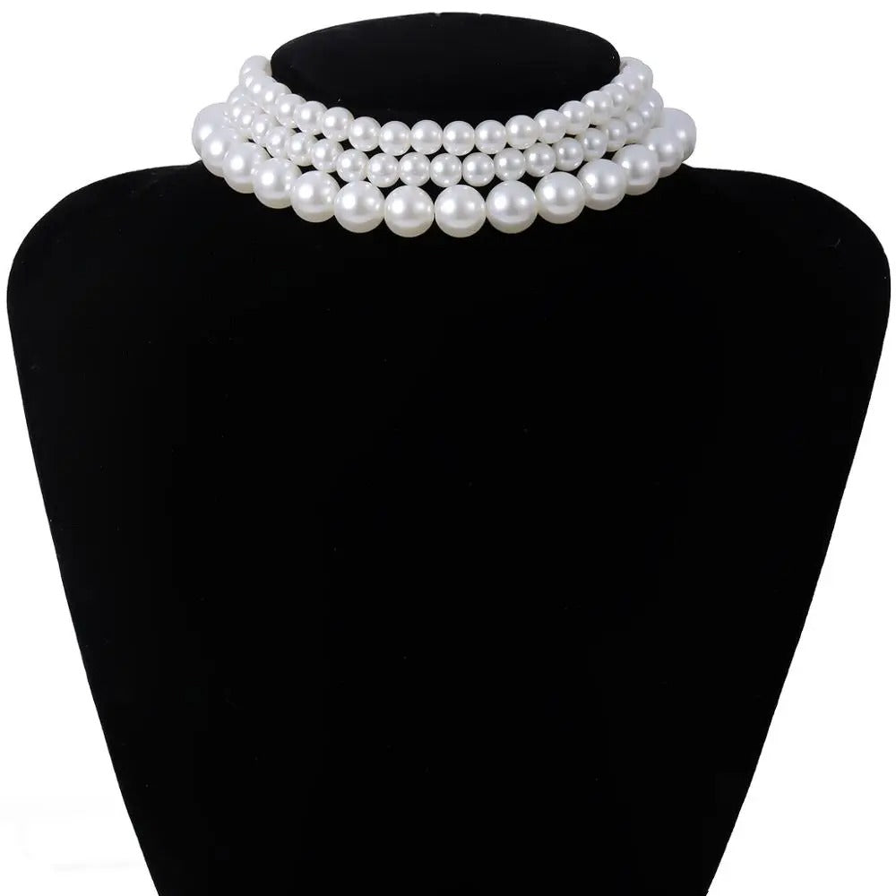 Multi-Layer White Imitation Pearl Necklace Bead Chain Punk Ladies Wedding Short Necklace Girl Charm Banquet Jewelry