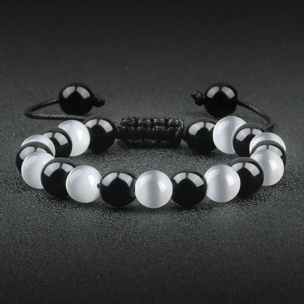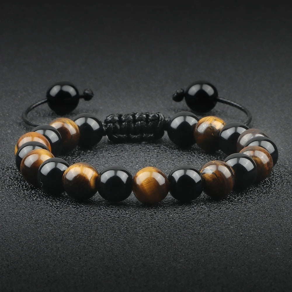 Natural Black Onyx & Tiger Eye Bead Bracelet Men Women Yoga
