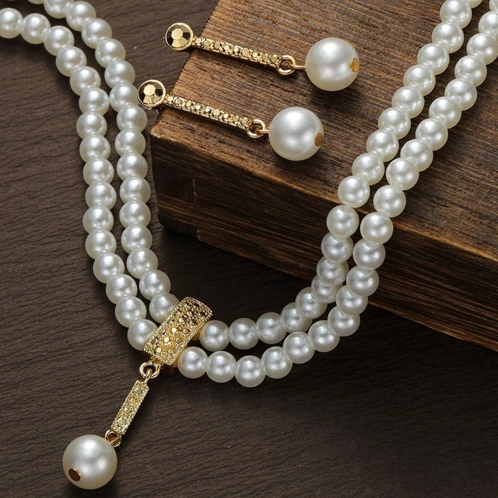 New Fashionable Bridal Jewelry Set Elegant Handmade Imitation Pearl Beaded Necklace And Earrings For Women Wedding Accessories